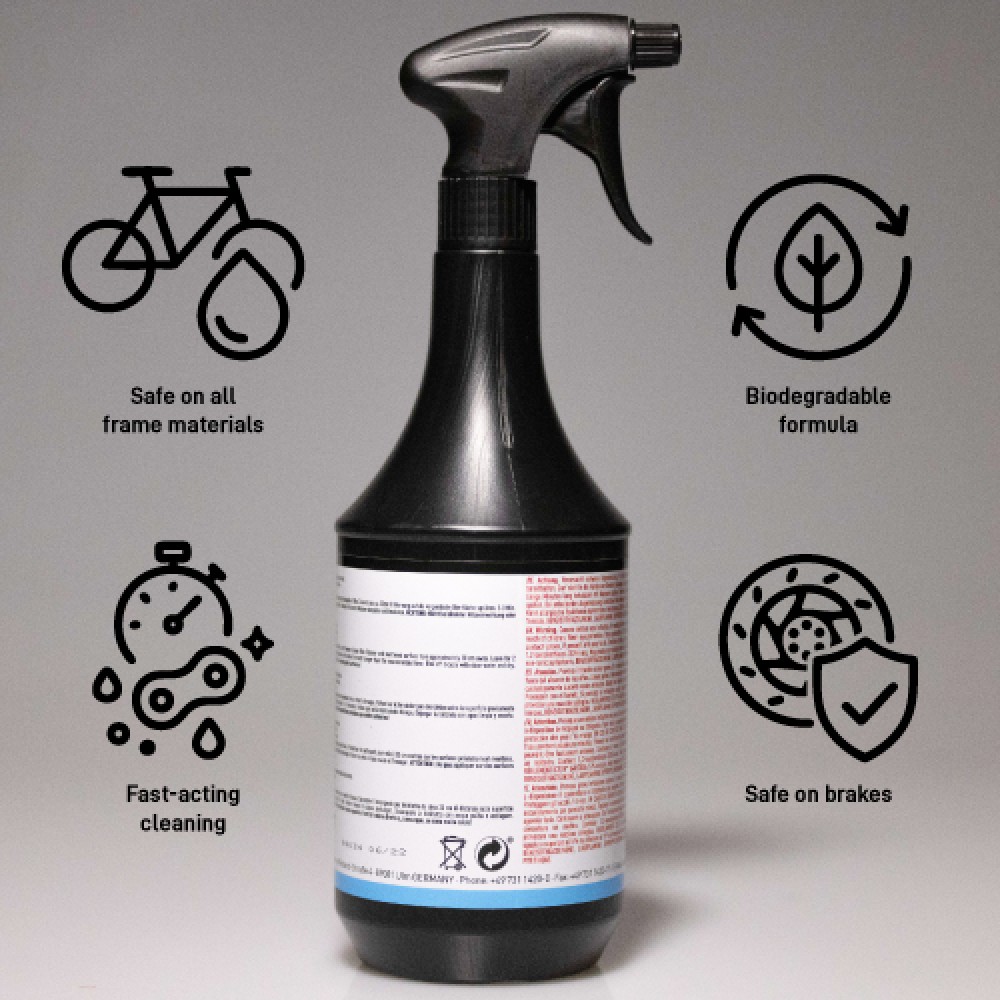 Highly effective biodegradable cleaner. Developed specially for very dirty bicycles. Dissolves and removes sludge, grime, dust, leaves etc. quickly and simply. Does not leave any greasy residues and has no influence on braking effect.