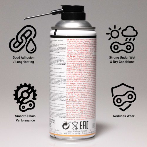 Designed to repel water, dirt, and mud. The spray keeps your drivetrain protected even in harsh weather. Prevents rust and corrosion so your bike is always ready for the next adventure.